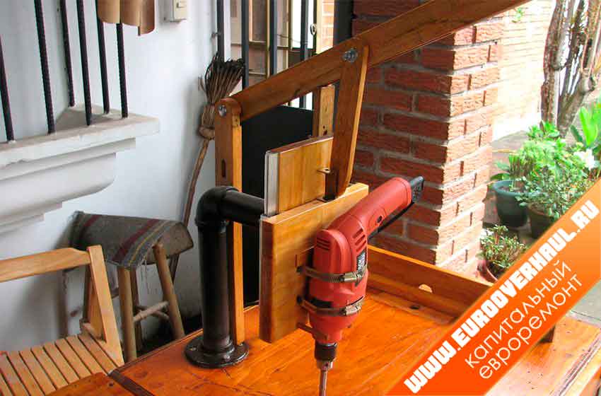 На фото схемах и чертежах показаны основные типы конструкций самодельных сверлильных станков, на которых применяется дрель.