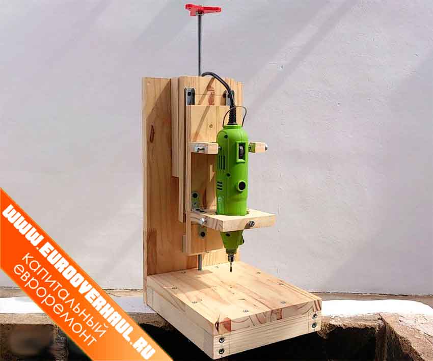 Также потребуется сама электродрель. Она поможет в сборке устройства, а после займет свое место на станине. Дополнительный плюс от подобной конструкции – дрель в любой момент можно будет снять и использовать по прямому назначению.