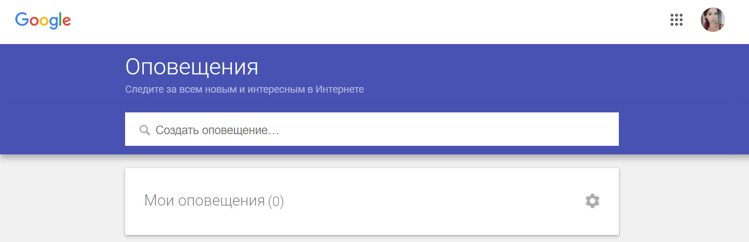 Сервис присылает на почту уведомления, когда в индексе Google появляются страницы с определёнными поисковыми запросами.