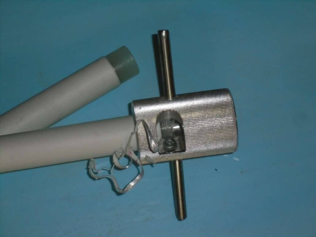 Для изготовления вала можно использовать переднюю стойку амортизатора легкового автомобиля (например, ВАЗ – их легче достать в автосервисе). Кроме того, марка стали стойки амортизатора по своим прочностным и эксплуатационным характеристикам вполне соответствует требованиям жёсткости для качественного торцевания стальных (и, тем более – алюминиевых) труб. Для направления вала пригодны направляющие самой стойки: они имеют поверхностное износостойкое покрытие на основе антифрикционных сплавов. Торцы стойки, естественно подлежат дополнительной обработке – под крепление в патроне дрели, и под установку корончатой фрезы.