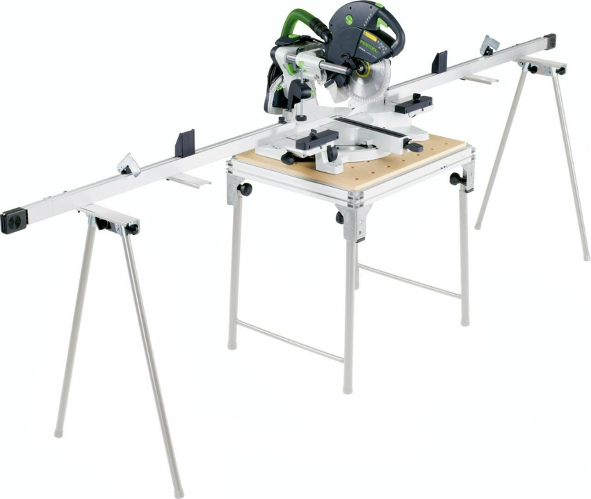 Существуют более сложные конструкции оснований с литыми подставками, которые фиксируются относительно опоры винтами-барашками. Многие производители укомплектовывают торцовочные пилы, цена которых будет не намного выше классических инструментов, отдельными стойками или специальными столами. Их можно располагать на некотором расстоянии от инструмента в зависимости от длины изделий.