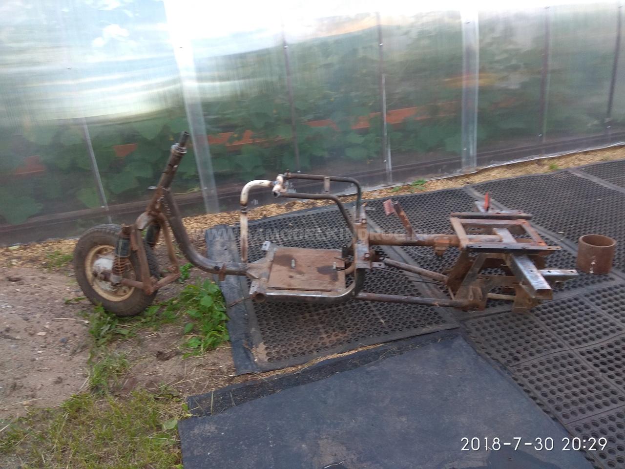 На раме располагаются все элементы мотоблока. Конструкция рамы состоит из двух лонжеронов, которые выполнены из стальной трубы дюйм с четвертью. Передние и задние концы лонжеронов загнуты вверх, задние необходимо загнуть навстречу друг к другу, потом соединить сваркой. При изготовлении рулевого управления можно использовать мотоцикл «Иж» и его запчасти.