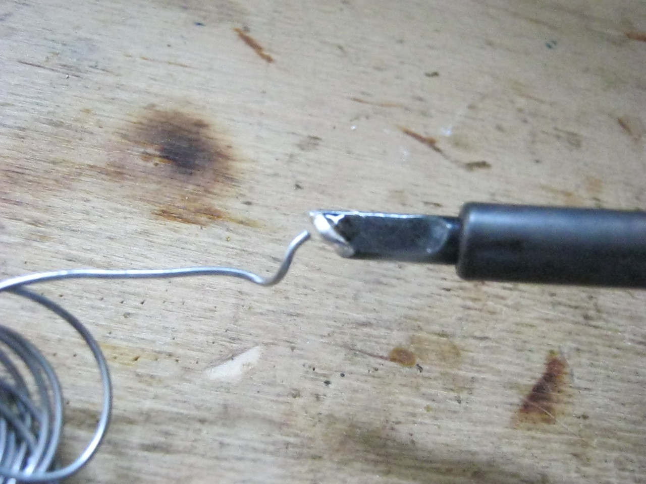 - Для жала подбирается медный прут или проволока меньшего диаметра. Заточите край прута для получения нужной формы, наиболее удобным для новичков считается форма плоской отвертки.