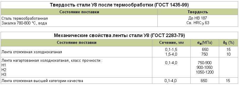 - Популярность не только для изделия выше перечисленных клинков, но и бытовых ножей. Также У8 подходит для инструментов, не связанных с разогревом режущей кромки, — фрез, зенковок, стамесок, долот, пил продольных и дисковых, накатных роликов, кернеров, отверток, комбинированных плоскогубцев, боковых кусачек.