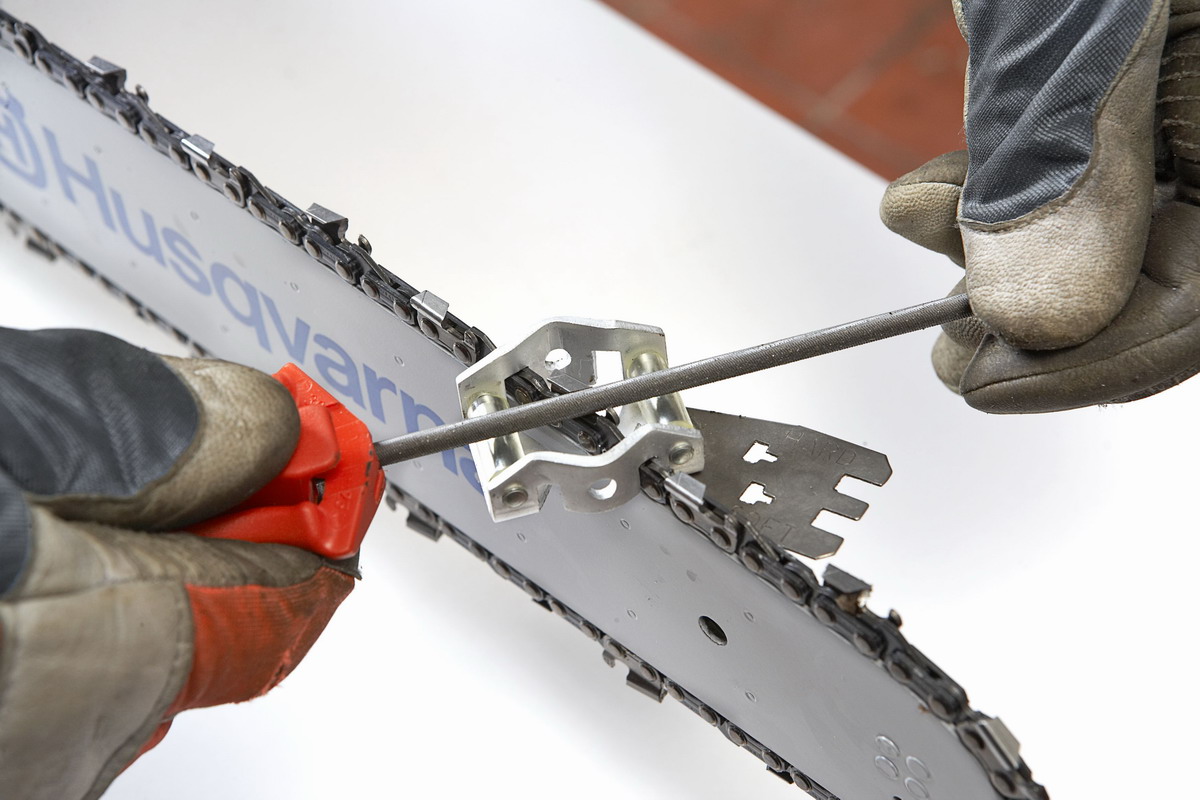 - Постоянно проворачивайте напильник вокруг своей оси, чтобы не только цепь затачивалась равномерно, но и напильник не стачивался с одной стороны, что может привести к неравномерному затачиванию в будущем.