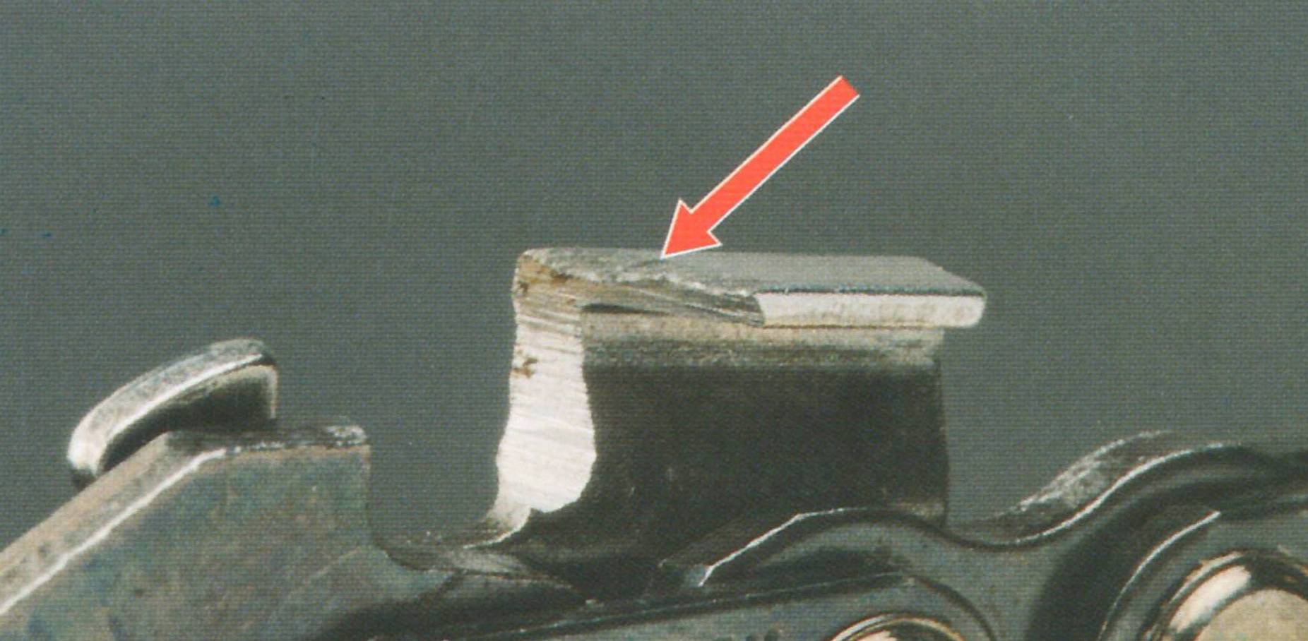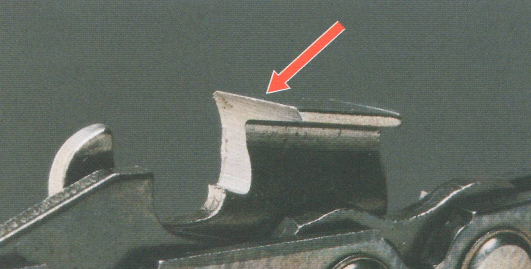 Высота цепного профиля может быть либо 0,625 мм, либо 0,762 мм, причём для бытового бензоинструмента в подавляющем большинстве случаев используется именно низкий профиль. При заточке ограничителей этот параметр весьма важен, потому что с уменьшением высоты сверхдопустимых значений вибрация инструмента при работе возрастает, хотя качество пропила остаётся по-прежнему удовлетворительным. Поэтому увлекаться снижением высоты ограничителя при заточке зуба не стоит.