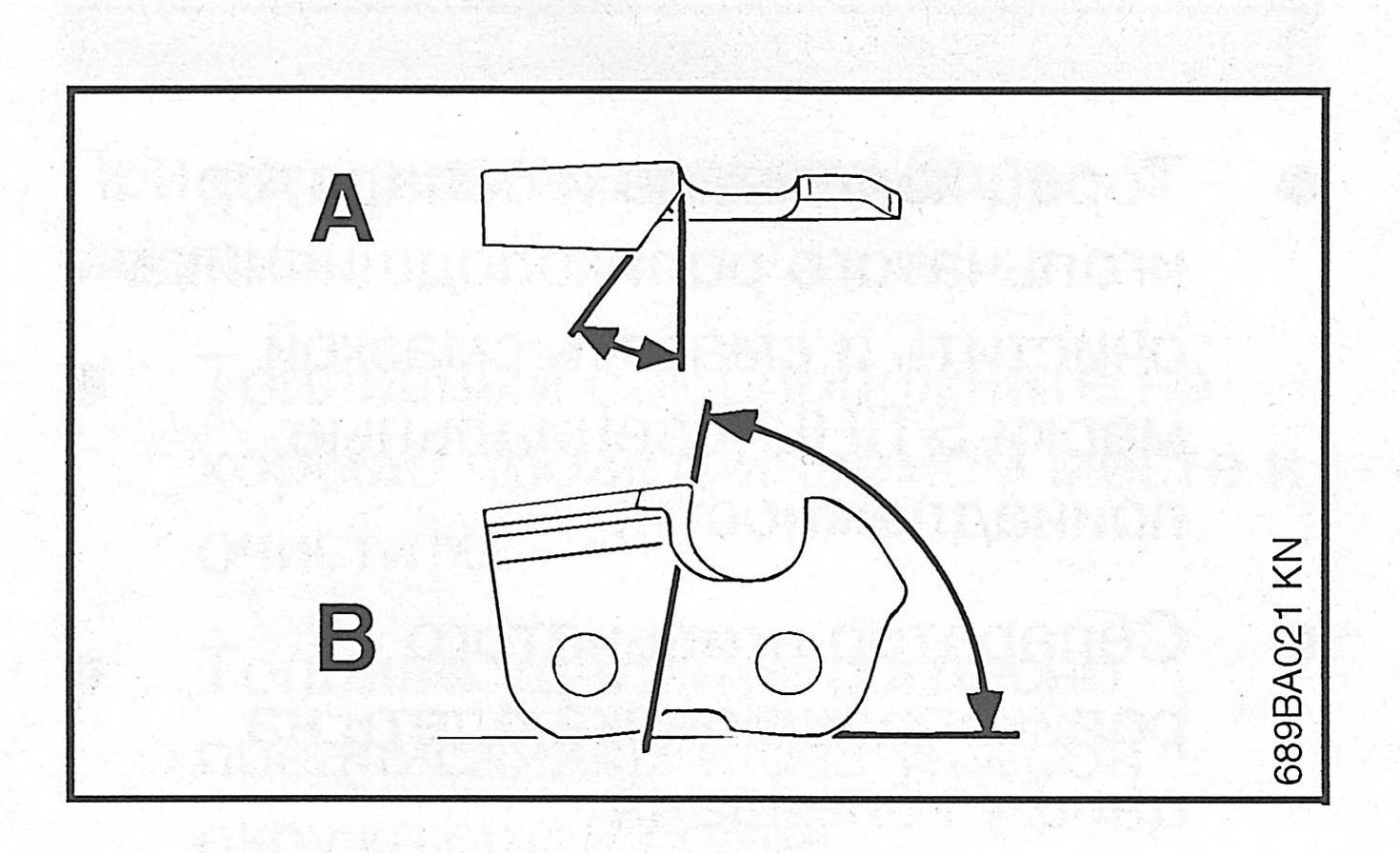 Избегайте угла заточки в диапазоне больше 35° и меньше 25°. В цепях для продольного пиления допускается исключение для угла заточки, в этих цепях угол заточки может составлять 10°.