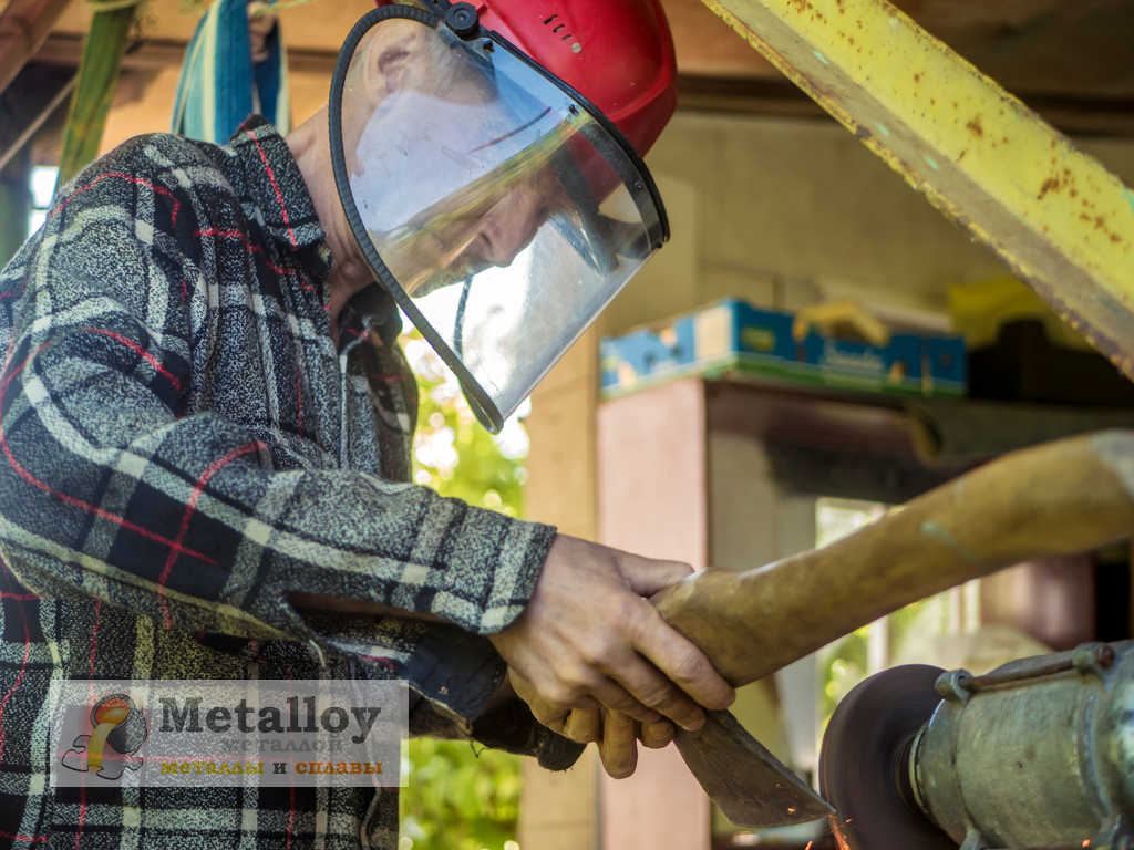 - Обработку ведут до полного удаления заусенец и щерблений на кромке топора.