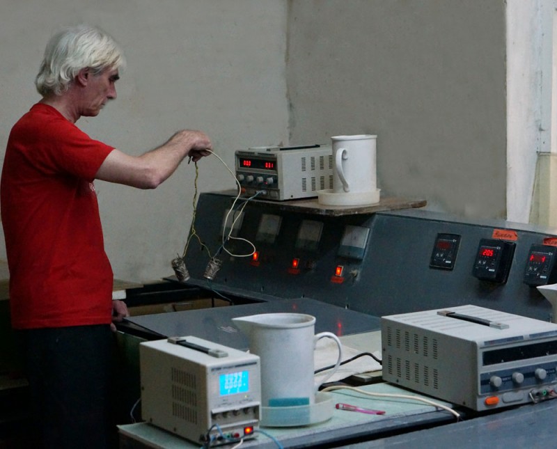 - Рабочий высушивает деталь и готовит бета-версию раствора (без гипофосфита натрия). Рецептов таких растворов существует много, однако чего всего его готовят на основе фтористого хромила, лимонной и уксусной кислот. Такой раствор нагревают до температуры 80-90 градусов, потом всыпается гипофосфит натрия — в результате получается альфа-версия раствора, который нужен для обработки.